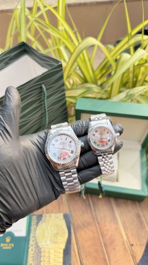 The ROL_EX COU_PLE features a Rolex date function, complemented by Roman numerals and diamond accents. This combination not only enhances readability but also provides a luxurious aesthetic. The use of high-quality materials ensures durability, while the classic design appeals to discerning tastes in timepieces.